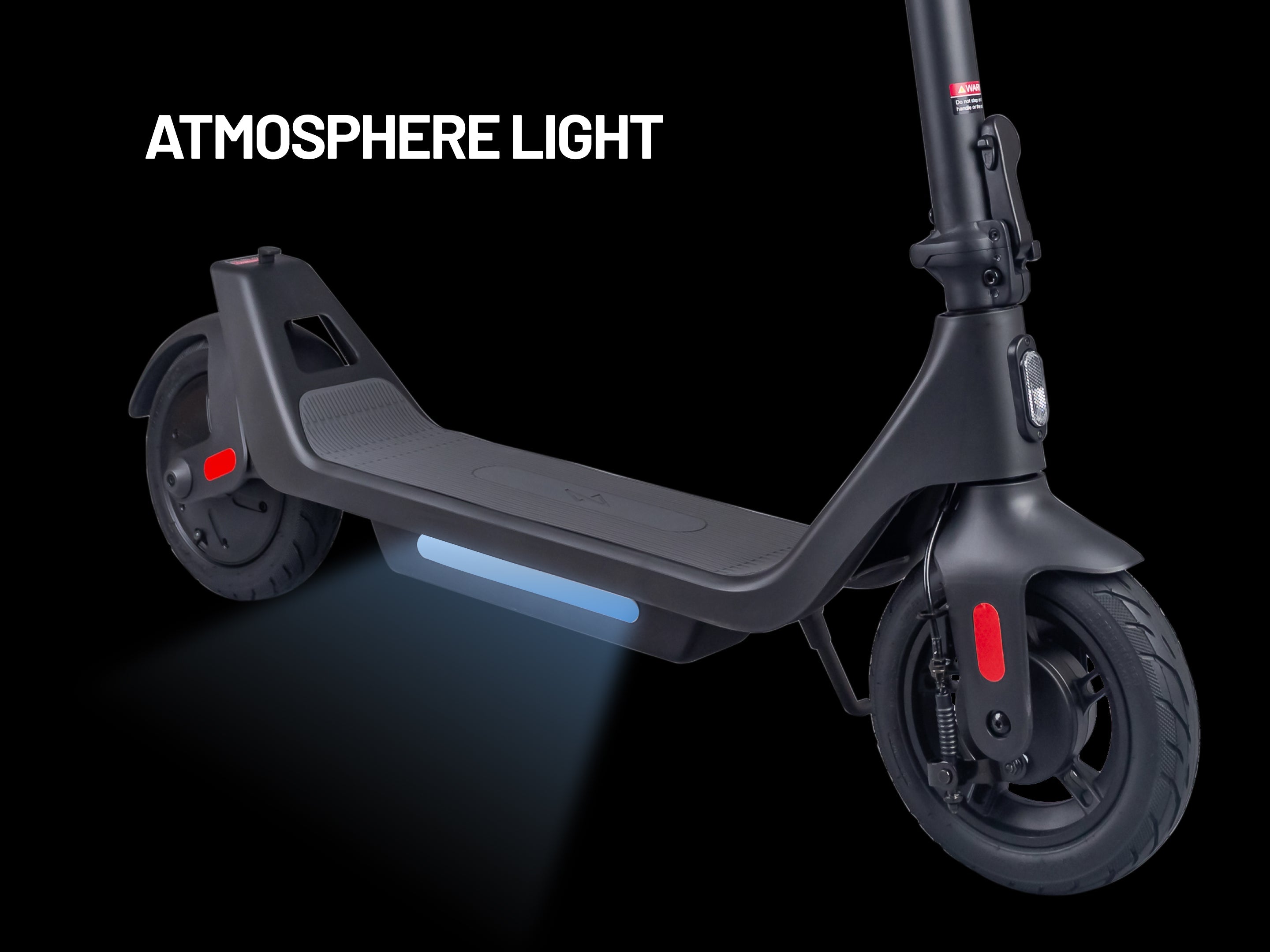The electric scooter front and rear wheel equipped with 10-inch solid tires and front dual break system provide max comfort, even on rough surfaces
