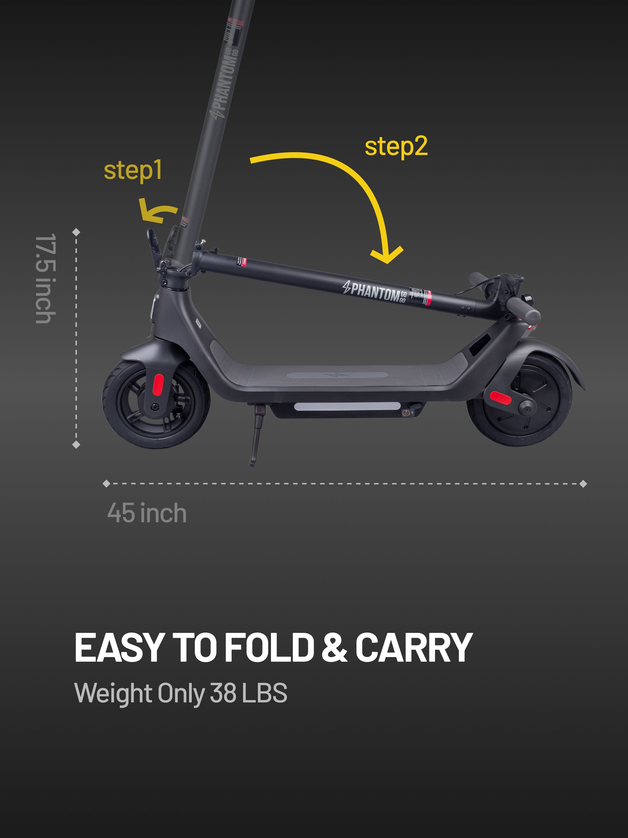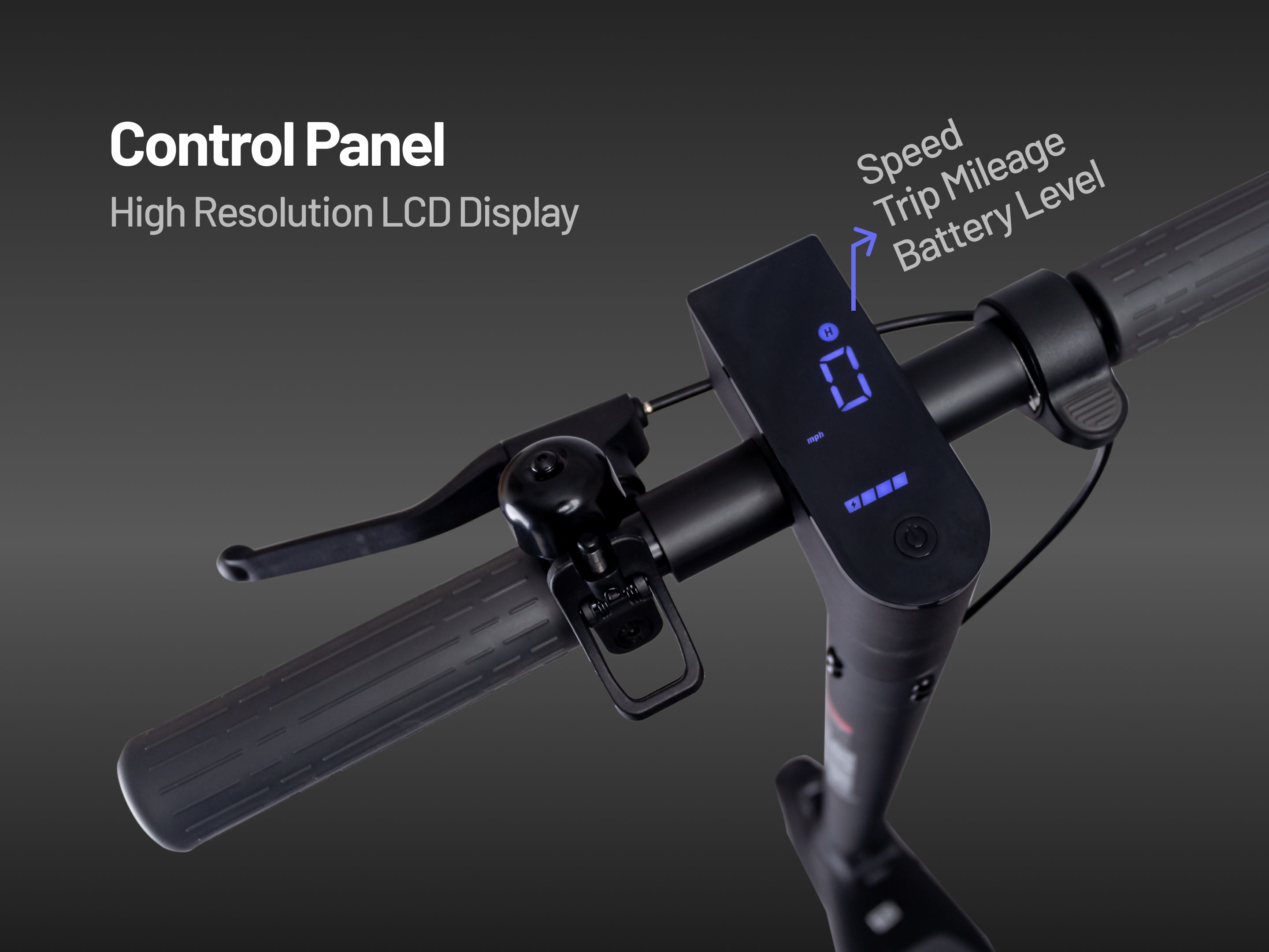 This scooter is equipped with a powerful 400w brushless motor that drives the e-scooter at a maximum speed of 15 mph. The motorized scooter can effortlessly climb up to 15 degree inclines.